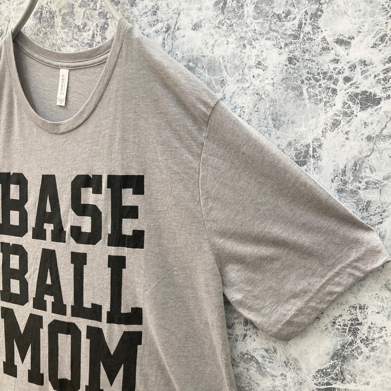 愛されブランド Bella + Canvas のストレッチTシャツに、ベースボールママのロゴが入った一枚。